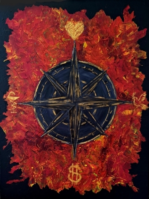 Das Werk „Der Krieger" wiederum, eine Collage mit Blattgold auf Leinwand, erzählt von einen mystischen Kämpfer. „Entweder ist man selbst ein Krieger - oder man braucht einen", so die Braunschweigerin.