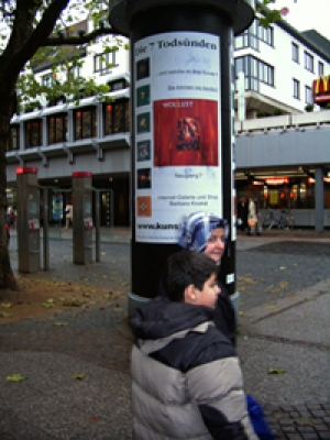 Die Braunschweiger Künstlerin Barbara Koukal beklagt den Diebstahl des Bildes "Wollust" aus ihrem Zyklus "Die 7 Todsünden". Das Bild wurde im "Foyer 61" neben dem Cinemax-Kino an der Langen Strasse von der Wand gerissen. Es handelt sich nicht um den 2003 entstandenen Original-Zyklus, der an einen Sammler in Hannover verkauft worden ist, doch haben auch die Drucke von jeder "Todsünden"-Serie immer noch einen Wert von 550 Euro. Fehlt ein Bild, ist die Serie entwertet.Der Zyklus enthält folgende Todsünden: Zorn, Neid, Maßlosigkeit, Trägheit, Wollust, Habgier und Hochmut. Im Christentum galt und gilt Wollust als eine Hauptsünde wie auch die Gier. Die Wollust war einer der Hauptvorwürfe an vermeintliche Hexen in der frühen Neuzeit. Als Barbara Koukal vom Diebstahl erfuhr, erfüllte ihr seelischer Zustand augenblicklich den Tatbestand der Todsünde "Zorn". Freilich erntet sie mit ihrer Mitteilung "mir haben sie die 'Wollust' geklaut" erst einmal nur Amüsement. Gestern hat die Künstlerin bei der Polizei Anzeige gegen Unbekannt erstattet. Gestohlen: Barbara Koukals Bild "Wollust". Das Bild in glühenden Rottönen gemalt. 01/05 - Braunschweiger Zeitung -ui-