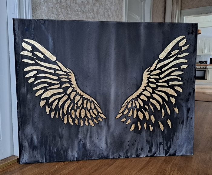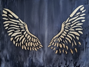 130 x 100 cm. Collage mit Blattgold auf Leinwand