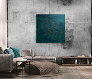130 x 130 cm. Collage auf Leinwand.