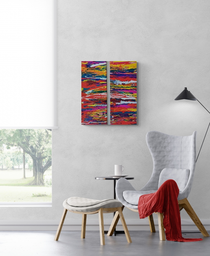 2 x 30 x 70 cm. Acryl auf Leinwand